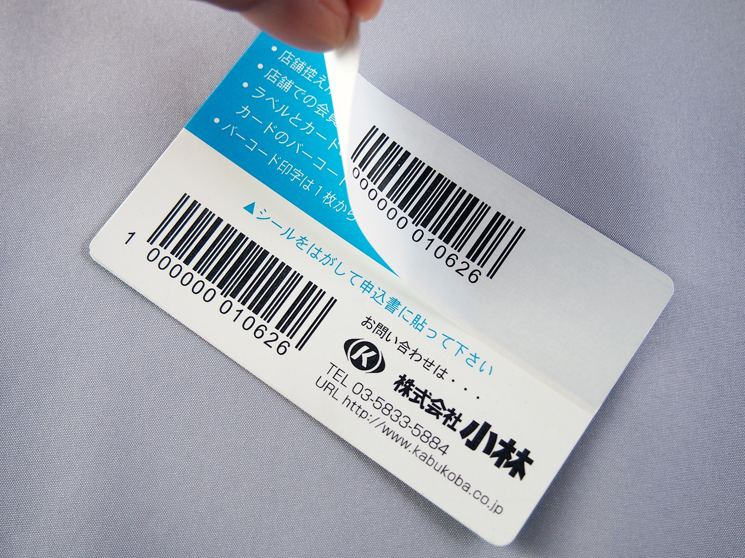 バーコードカードと店舗控えラベルが一体となったカード/カード1枚と家族用ミニカード2枚がセットになったカード